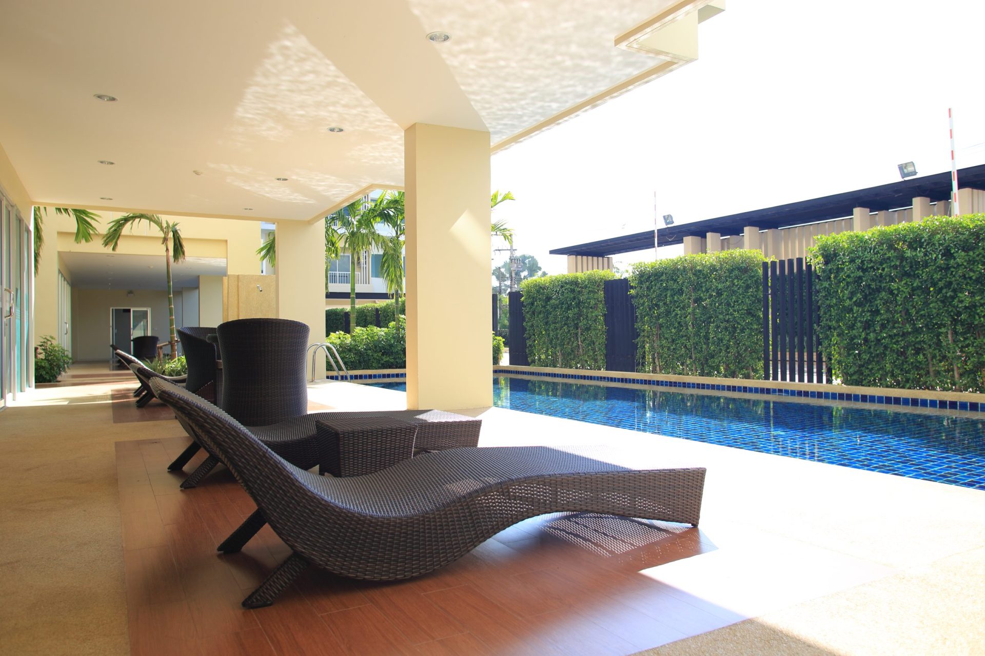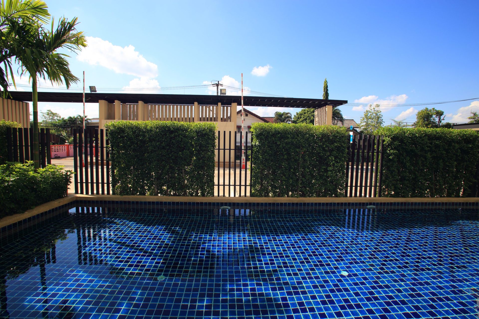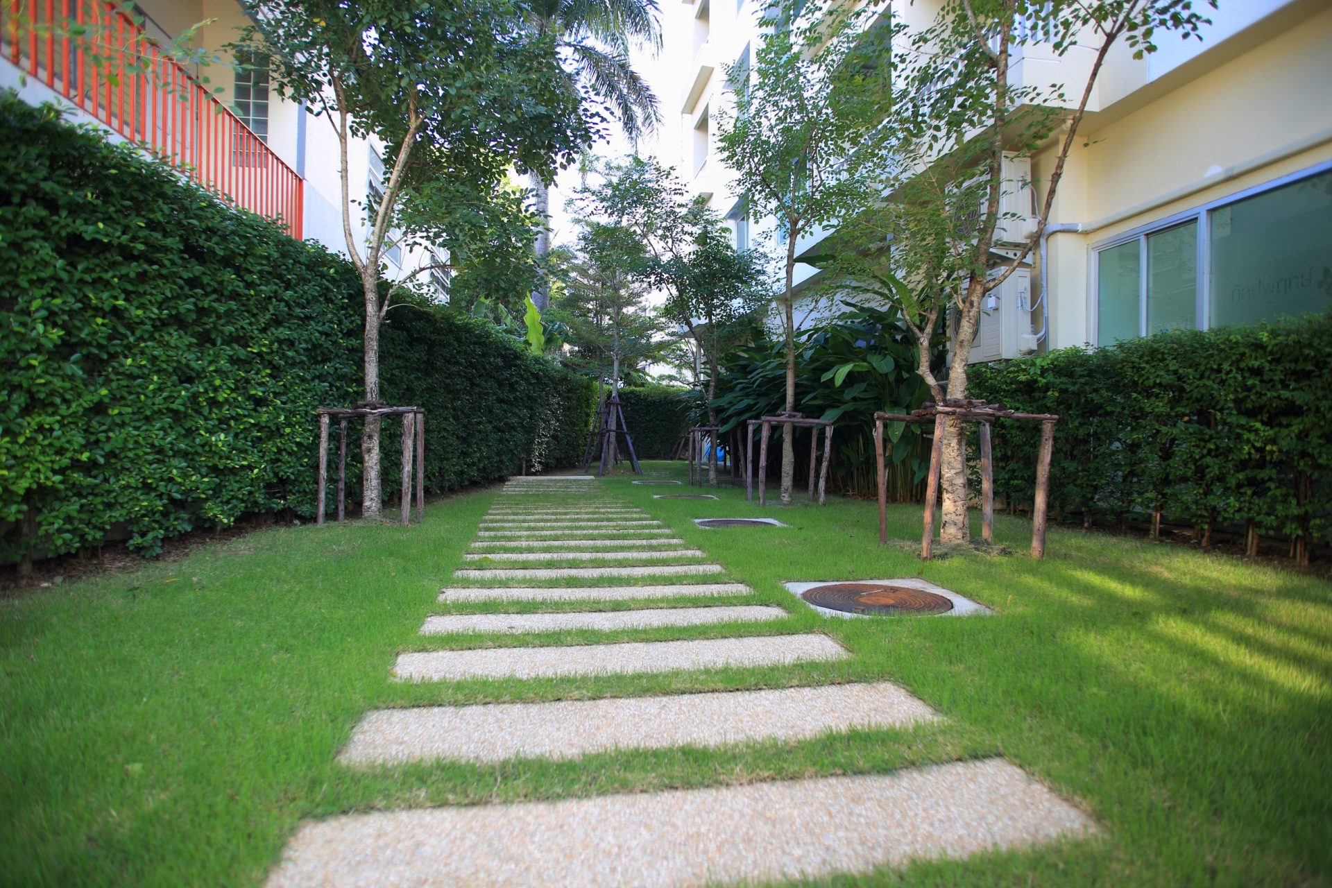 สวนพักผ่อน รั้วพุ่มไม้ตลอดแนว