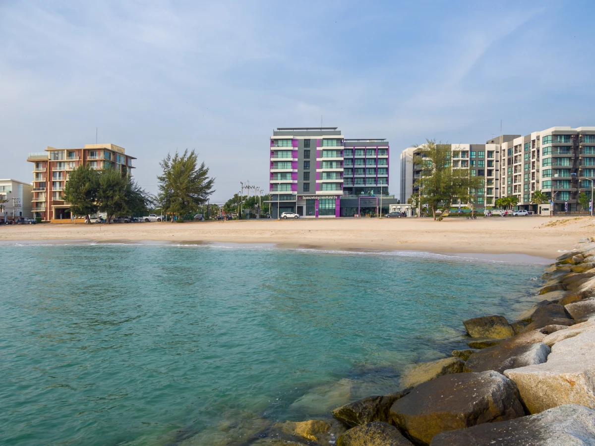 เรากลับมาที่หน้า ‘โรงแรมฟอร์จูน แสงจันทร์ บีช’ อีกครั้งในช่วงเวลาที่ท้องฟ้าเริ่มเปลี่ยน แสงสีส้มทองค่อยๆ ลับขอบฟ้า ลมร้อนจางหายไปแทนที่ด้วยลมเย็นที่หอบเอาความสดชื่นมาให้ ภาพคนนั่งตกปลาบนโขดหิน เสียงหัวเราะจากการเล่นน้ำ และบทสนทนาที่ดูผ่อนคลายรอบตัว ทำให้บรรยากาศริมหาดแสงจันทร์ยามเย็นเต็มไปด้วยความโรแมนติกที่จับต้องได้